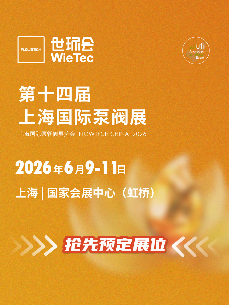 煥新升級!第十四屆上海國際泵閥展將于2026年6月9-11日上海國家會展中心(虹橋)盛大啟幕,誠邀全球“泵閥人”共聚盛會。